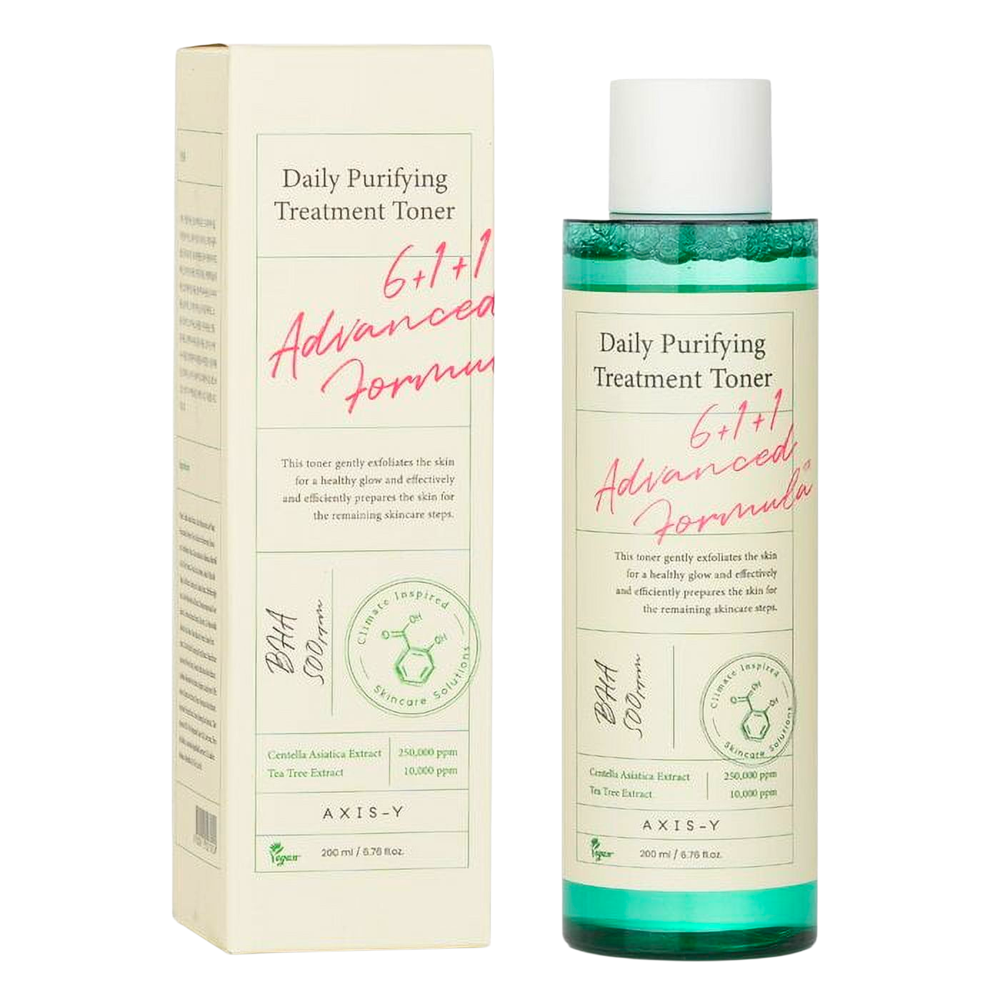 The AXIS-Y Daily Purifying Treatment Toner functions as a gentle yet powerful skin product capable of cleansing and soothing break-out prone skin. The combination of plant-based ingredients in this formula contains Centella Asiatica with Tea Tree Extract and Sugar Cane Extract that combats skin inflammation while controlling oil production while gently removing dead skin cells. Due to its alcohol-free composition this product is appropriate for individuals with sensitive skin types.