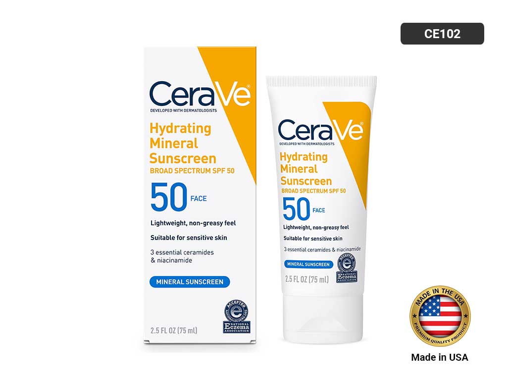 CERAVE Hydrating Mineral Sunscreen SPF 50 Protect your skin from the sun with a gentle, yet effective face lotion and Broad Spectrum SPF 50 is a 100%-mineral, oil-free sunscreen with titanium dioxide and zinc oxide that forms a protective barrier on your skin’s surface to help reflect the sun’s UVA and UVB rays without irritating sensitive skin.