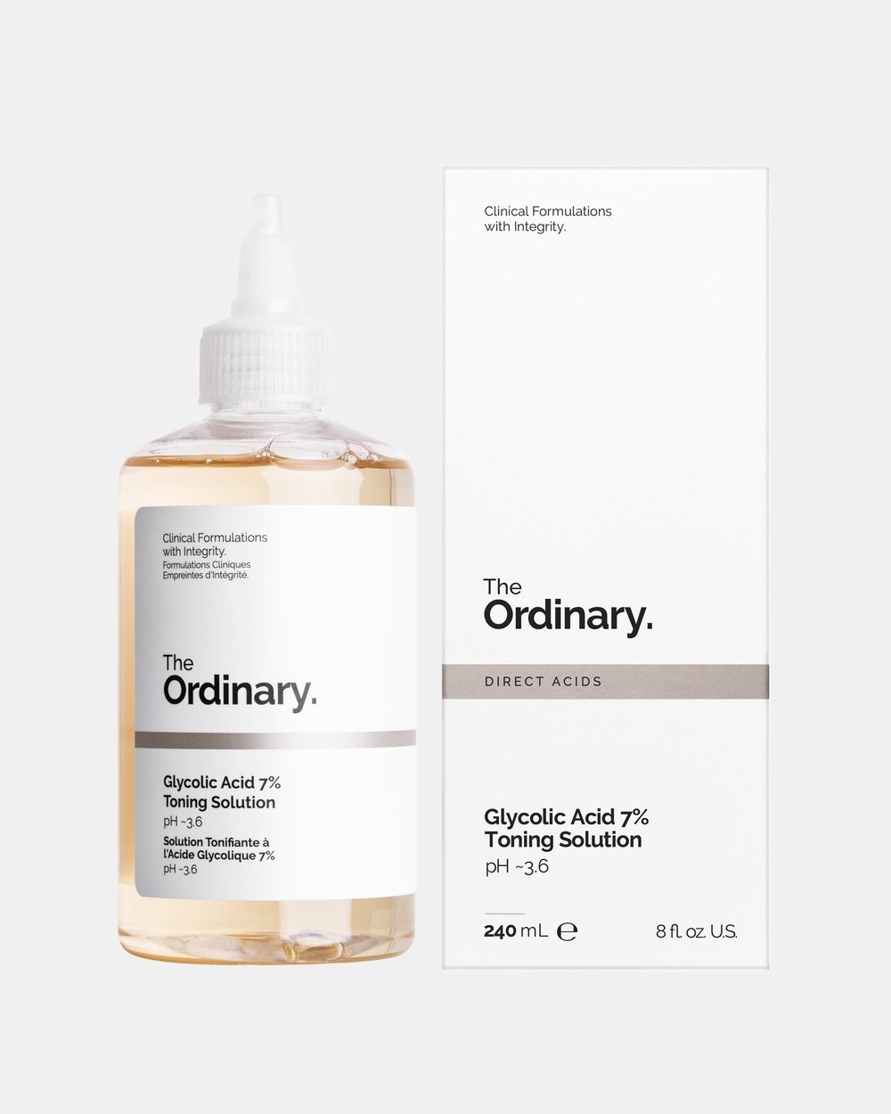 Glycolic Acid 7% Toning Solution is an exfoliator that significantly smoothes skin texture and promotes the appearance of a more even skin tone, as well as more luminous skin, with regular use. It also reduces the appearance of lines and wrinkles. The water-based toner format is suited to daily use.